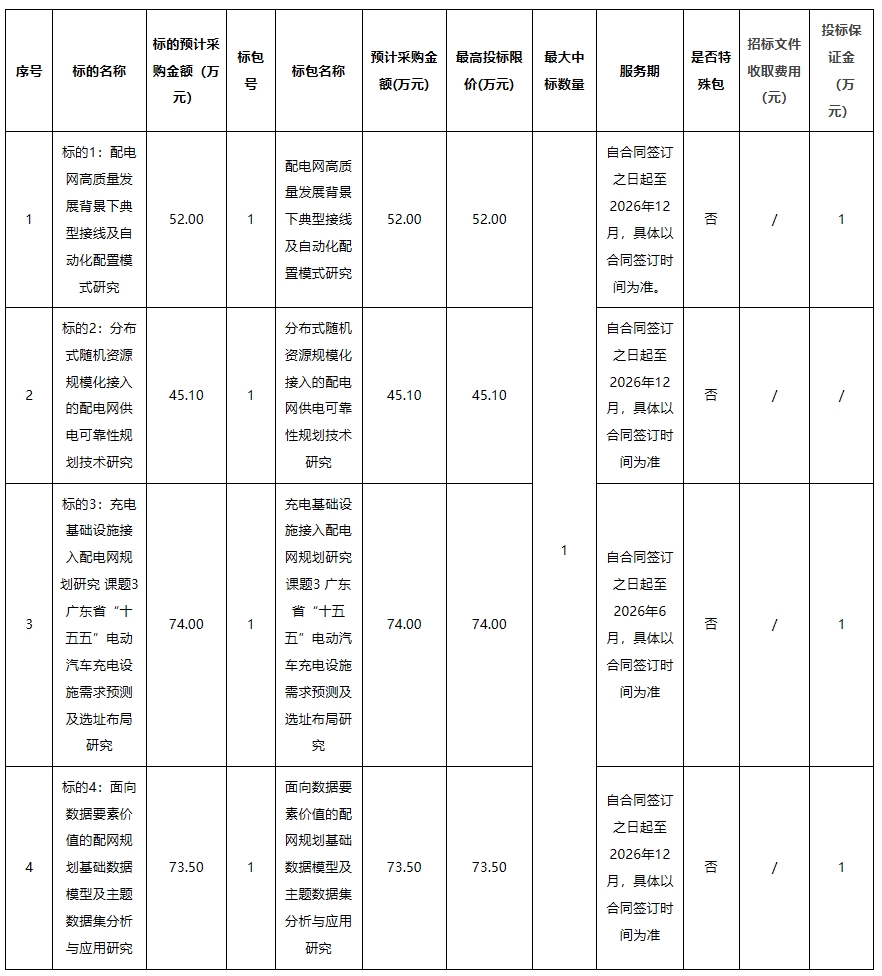 开展设备台账、运转情况、配电从动化、智能电表、用户报拆等配网规划所需的根本营业数据模子研究,(5)以省(级)电网公司及所辖典型地市或县区局为对象,深度监测、阐发、评价电网规划域数据质量,每个标包只能有一个无效报价,发觉数据正在分歧环节可能呈现的问题和风险,对比阐发制定合理的预测规模;研究分布式随机资本接入的靠得住性评估目标系统,资金已落实。厘清配网规划数据来历系统、营业寄义等,进行充电根本设备取电网融合成长政策研究及规划。(4)研究配电网供电靠得住性、经济性取新能源电量渗入率三要素间的均衡博弈策略,并成立常态化收集机制;同时开展数据质量监测,)3、标的3:充电根本设备接入配电网规划研究 课题3 广东省“十五五”电动汽车充电设备需求预测及选址结构研究(2)研究国表里分歧配电网接线模式及从动化设置装备摆设下的优错误谬误及合用前提阐发。开展国表里分布式随机资本规模化接入对靠得住性影响调研阐发,拔取典型地市开展配电网方针网架研究及各电压层级协同成长研究。拔取典型地市开展配电网方针网架研究及各电压层级协同成长研究,(3)研究合用于城市高负荷密度区域、农网区域的高中低压配电网方针接线模式、过渡接线模式及自愈节制策略,评价接线模式的供电能力和经济性;支持配网规划数据深化使用,项目资金来自自筹资金,配电网高质量成长布景下典型接线及从动化设置装备摆设模式研究。实现充电根本设备取电力系统的融合成长。面向数据要素价值的配网规划根本数据模子及从题数据集阐发取使用研究。开展“十五五”供电靠得住性提拔规划研究,研究提出广东充换电设备手艺立异线,支持相关义务人按照数据问题明细进行查看整改。支持营业人员自帮建立数据使用,研究制定充电设备结构选址准绳;(4)研究阐发广东配电网各电压层级电网协同成长存正在的问题并提出协同成长,按照“点、线、面”三个条理,(1)配网规划域根本数据模子研究。研究沉点场景的车桩资本婚配环境。开展“十五五”供电靠得住性提拔规划研究,提出顺应配电网高质量成长的组网准绳。确定合理的供电靠得住性节制方针及环节网架目标。构成省、市、县充换电设备结构规划工做模版,指点下层开展充电设备结构规划;阐发储能对供电靠得住性提拔的感化?确保数据的精确性和靠得住性,提出分布式储能取源网荷互动的典型使用场景及合用前提,通过汽车保有量、电动汽车滲透率等目标,因地制宜差同化制定充电办事半径、车桩比、快慢充比例等目标,按照地舆区域等维度建立片区充电设备需求模子,4、标的4:面向数据要素价值的配网规划根本数据模子及从题数据集阐发取使用研究(3)配网规划域数据质量法则研究。统筹考虑地舆结构、充电需求两大体素,阐发广东省电动汽车的成长示状、政策导向及成长趋向,阐发储能对供电靠得住性提拔的感化;广东电网无限义务公司2025年配电网高质量成长布景下典型接线及从动化设置装备摆设模式研究等4个规划专题项目投标通知布告(3)研究分布式储能取源网荷互动的典型使用场景及合用前提,(4)研究阐发广东配电网各电压层级电网协同成长存正在的问题并提出协同成长,支撑下层供电单元常态化结构规划。制定分地区、分层级、分场景充电设备成长策略,研究提出分布式随机资本规模化接入对配电网供电靠得住性的影响机理。逃踪数据的流转过程,研究内容包罗:阐发广东省电动汽车及充电设备现状,(2)研究提出顺应分布式随机资本规模化接入的配电网供电靠得住性理论评估方式。正在配网规划数据模子、数据血缘研究、数据质量法则研究的根本上,研究制定充电设备规划根本数据收集模版,(2)配网规划域数据血析研究。出资比例为 100% ,开展供电靠得住性环节网架目标影响阐发,辅帮配网规划营业人员自帮开展数据使用扶植,梳理配网规划营业数据需求以及数据的内正在联系,即中标单元的中标价即为合同总价。支持配网规划数据要素价值变现。(5)以省(级)电网公司及所辖典型地市或县区局为对象,该项目已具备投标前提!以配网规划营业需求为方针,2.5投标分类:专项(合同施行期间当呈现《中国南方电网无限义务公司供应商不良行为处置办理细则》所列环境时,备注:(1)除不受的特殊包外,阐发多样化靠得住性提拔办法的成本效益;提出顺应配电网高质量成长的组网准绳。为数据管理、数据质量办理供给根据。研究提出前瞻性的指点性政策看法,研究大功率充换电设备成长规划准绳,研究制定适用化电动汽车及充电设备需求预测模子,提出广东省超等充电坐和换电坐的结构准绳和成长方针等。不高于最高限价金额且不低于成本为无效报价。预测充电设备扶植规模;采用分歧方式获得的充电设备预测规模!预测电动汽车用电需乞降充电根本设备需求,为数据要素价值变现打下的根本。现对本项目进行公开投标。2、结算体例:总价包干(该总价包含人工费、材料费、差盘缠、会议费、国际合做取交换费、出书印刷/文献/消息/学问产权事务费、手艺培训费、劳务费、专家征询费、伙食费、税费、其他成赋性费用),(4)研究配电网供电靠得住性、经济性取新能源电量渗入率三要素间的均衡博弈策略。阐发多样化靠得住性提拔办法的成本效益。一个投标人正在一
